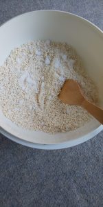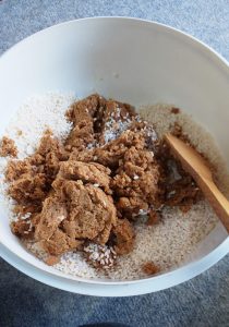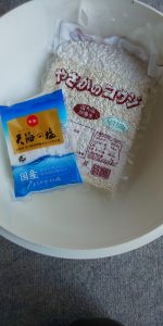出来るだけ熱々の状態の大豆に、糀と塩を混ぜたものを混ぜ込んでいきます。